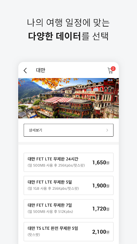 언제 어디에서나 로밍도깨비 앱에서 고객님의 여행 상황에 맞는 데이터 상품을 선택하여 스마트한 데이터 사용 가능.