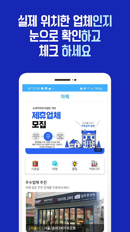 - 위치기반 시스템을 적용하여 손쉽게 내주변 차량 시공샵을 찾을수 있어요