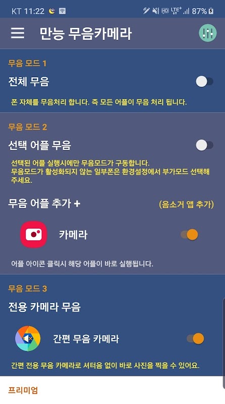 ★무음모드4 (고급카메라모드) 추가