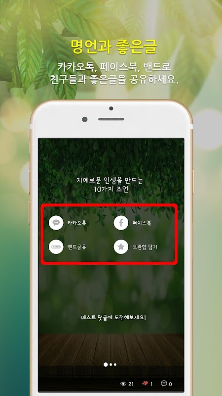 - 공유기능으로 명언, 사랑글귀, 좋은글, 마음가짐을 새롭게 해주는 글들을