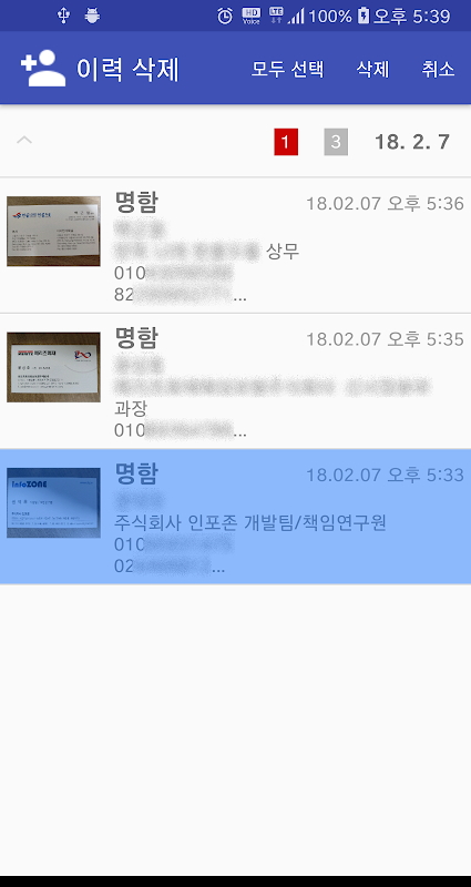 명함인식 - 명함 사진을 연락처로 저장 3.1.3