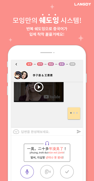 모잉만의 쉐도잉 시스템으로 진짜 소리를 익혀보세요!