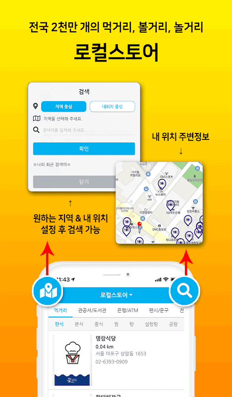 30 मिलियन से अधिक स्थानों की जानकारी मानचित्र, Naver, Daum और Google के साथ समीक्षा और विस्तृत जानकारी का मार्गदर्शन करने के लिए जुड़ी हुई है। होम स्क्रीन से, केवल 3 से 5 साधारण क्लिक स्वचालित रूप से और आसानी से विभिन्न जानकारी की जांच और नेविगेट करने के लिए किए जाते हैं। उपलब्ध