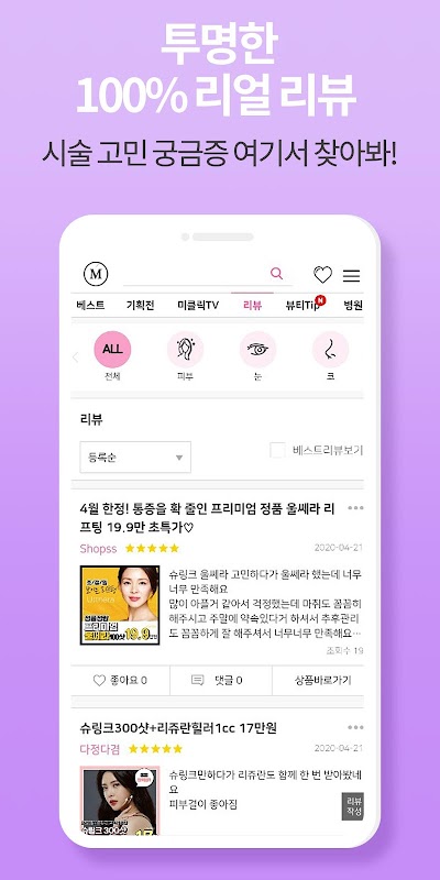 미클릭 : 후기로 증명하는 피부, 시술, 성형, 정보앱 1.9.28