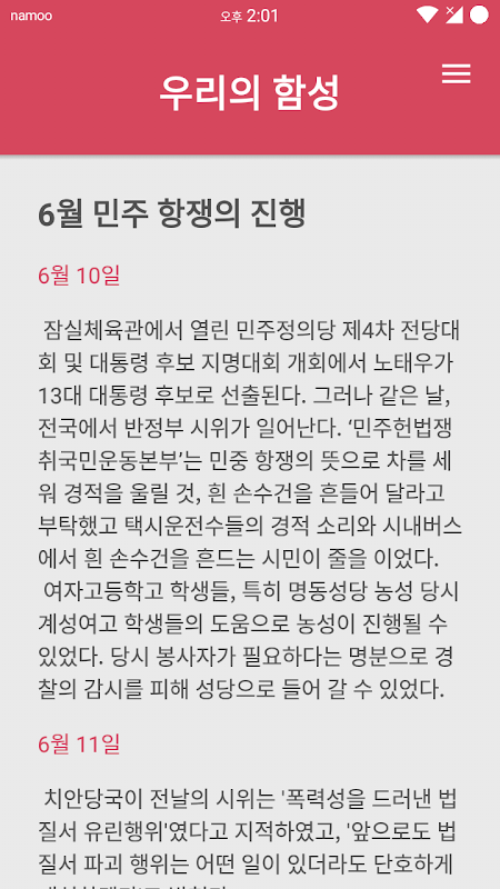 Bakjongcheol शहीद, एक शहीद की मौत में लोगों के गुस्से को yihanyeol, और चढ़ गए chimileo जून डेमोक्रेटिक मूवमेंट अंत में शुरू कर दिया। अधिक उस समय डेमोक्रेटिक मूवमेंट geopdeon तोड़ने के करीब महसूस करता है।