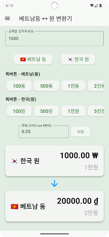 यह वियतनामी डोंग (VND) ↔ कोरियाई वोन (KRW) के आसान और तेज़ रूपांतरण का समर्थन करता है।