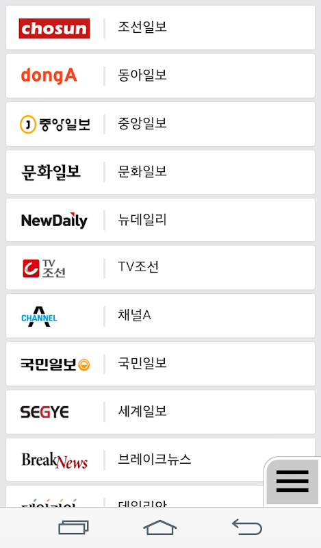 앱에 수록된 언론 및 방송매체 -