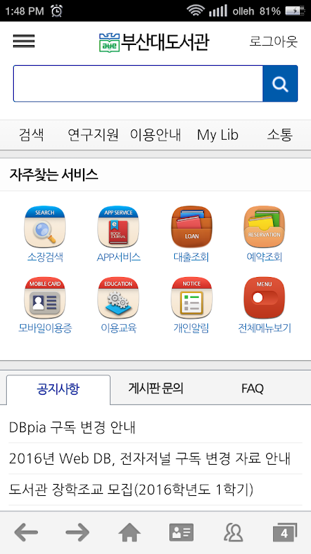 부산대학교 도서관에서 공식으로 배포하는 모바일 도서관 어플리케이션입니다.