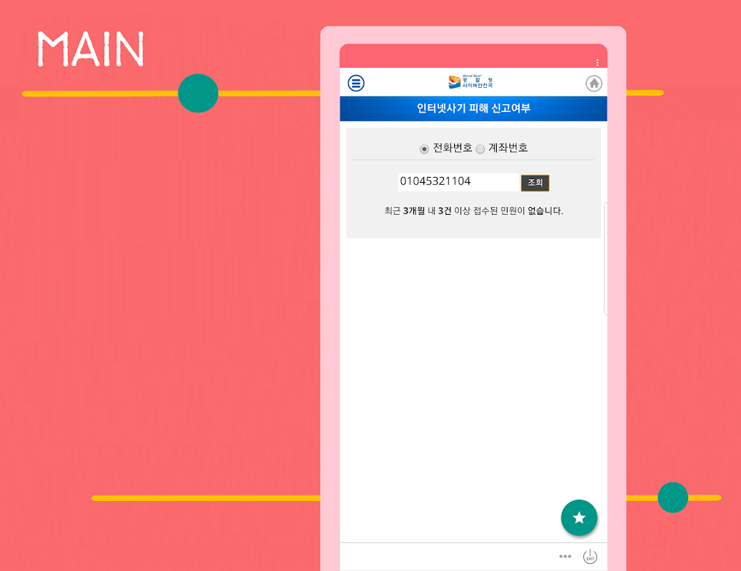 입금전 PC 로 검색이 어려울때 모바일 폰으로 간편하게 사기전화번호조회, 사기계좌번호조회, 사기피해조회, 사기정보조회를 할 수 있습니다.