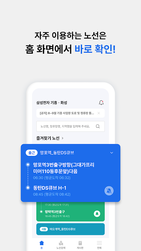 सैमसंग कम्यूटर बस (बस) ऐप विशेष रूप से सैमसंग कर्मचारियों के लिए है और प्रत्येक व्यावसायिक स्थान के लिए कम्यूटर बसों के बारे में जानकारी प्रदान करता है।