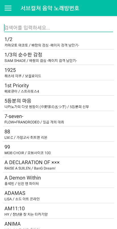 서브컬쳐 음악 노래방 번호 - 혼모노래방 APK जानकारी