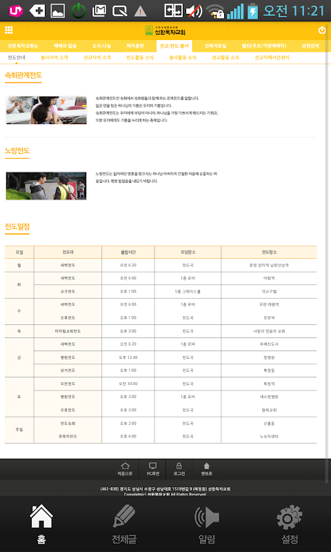 * 100% 연동형 앱 : 홈페이지에 등록된 내용, 게시물, 설교영상, 사진 등의 콘텐츠를 앱과 100% 연동하여 실시간으로 앱을 통해 확인할 수 있습니다.