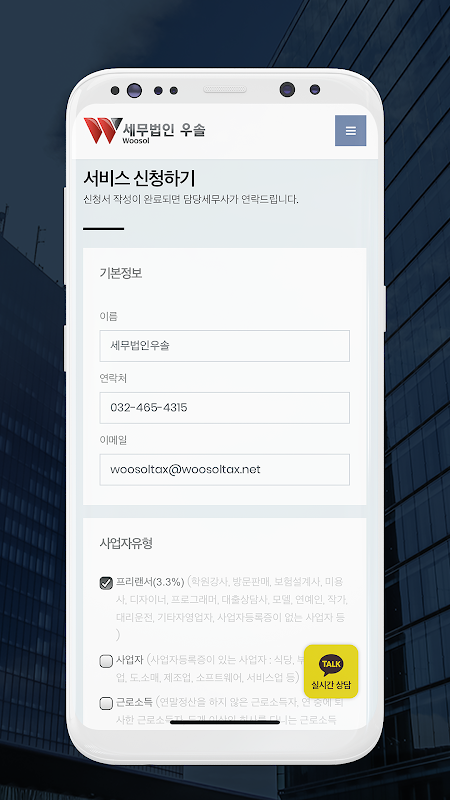 창업상담 / 세무컨설팅 / 재산세제 / 조세불복기타 세무법인 우솔의 담당 세무사와 함께 해결하세요.