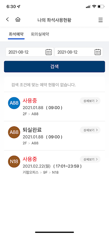 • आप बैठक कक्ष और दिनांक द्वारा एक नज़र में बैठक कक्ष आरक्षण की स्थिति की जांच कर सकते हैं।