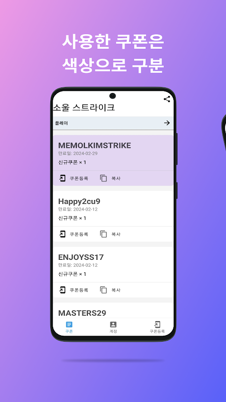 कूपन की समय सीमा समाप्त होने से पहले उसका उपयोग करें। आप "सोल स्ट्राइक" के लिए कूपन जानकारी प्रदर्शित कर सकते हैं और नए कूपन जारी होने पर पुश सूचनाएं प्राप्त कर सकते हैं।