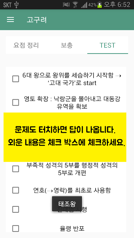 व्यस्त भी अध्ययन देशों बुध, अंग्रेजी, कोरियाई इतिहास, खाली समय में एक अलग समय ऐसा करने के लिए कोरियाई इतिहास सैट Cheat एप्लिकेशन का अध्ययन करें -