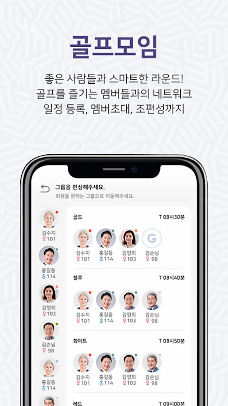골프장, 코스, 티타임, 그룹별 조편성