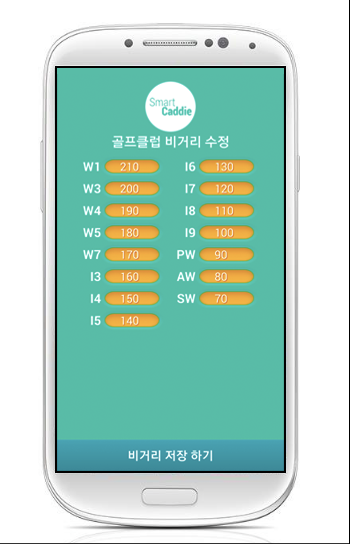 1. 처음 설치시 7번 클럽 비거리를 입력 하면 7번을 기준으로 클럽 별 비거리가 10m씩 가감이 되어 저장 됩니다.