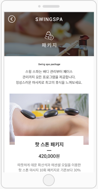 스윙투앱으로 제작된 스파 업종 샘플앱입니다.