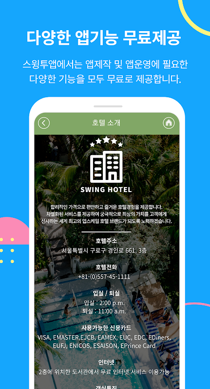 스윙투앱으로 제작된 HOTEL 디자인 샘플랩