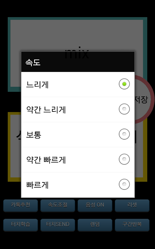 터치학습 - '터치저장' 버튼을 통해 눌려진 단어 반복 학습