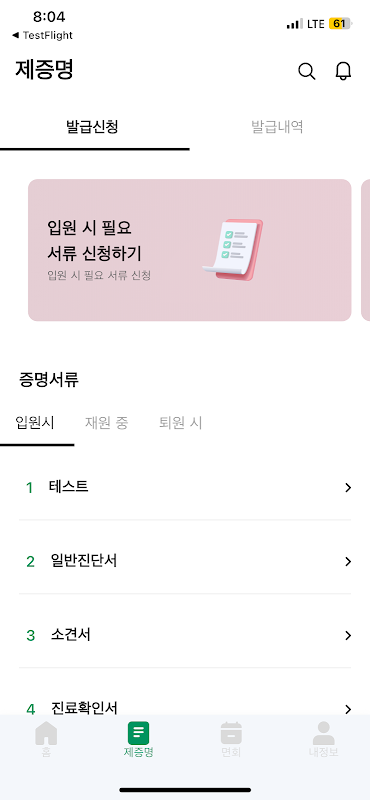 3. प्रमाणपत्र जारी करने का प्रबंधन: आप ऐप के माध्यम से मेडिकल रिकॉर्ड और राय जैसे आवश्यक दस्तावेजों को जारी करने के लिए आसानी से आवेदन कर सकते हैं और प्रबंधन कर सकते हैं। आप अस्पताल गए बिना भी महत्वपूर्ण दस्तावेजों के लिए आसानी से आवेदन कर सकते हैं।