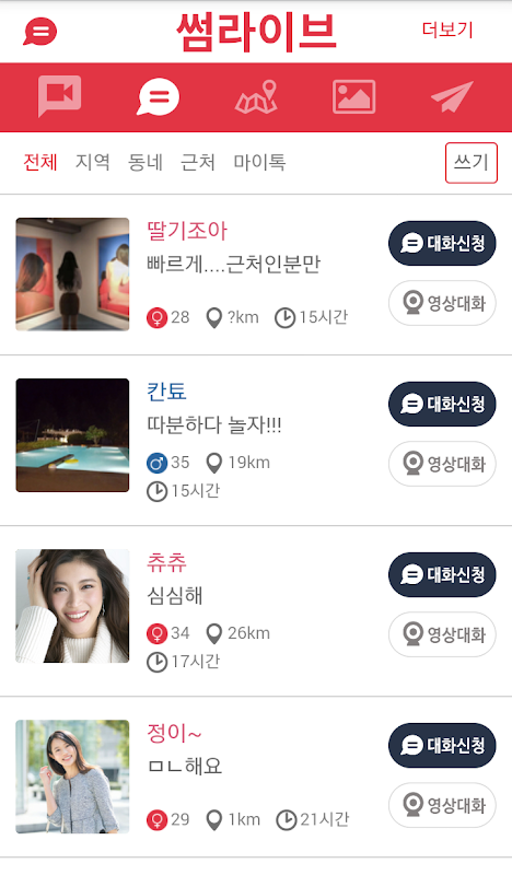 썸라이브는 이성간의 실시간 랜덤채팅, 화상채팅을 통해