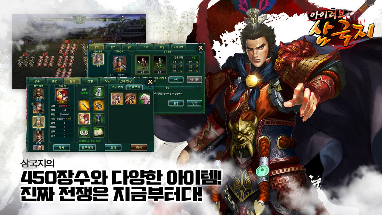 위, 촉, 오의 삼국시대를 배경으로 95개의 병종 및 10개 진법, 역사에 기초하여 설정된 450여명의 장수가 존재하는“아이러브삼국지”는 전략RPG 중 가장 방대한 콘텐츠를 제공하며 2011년 중국 텅쉔 선정 Top10 웹게임에 랭크 되었던 와룡전설”의 모바일 버전입니다.