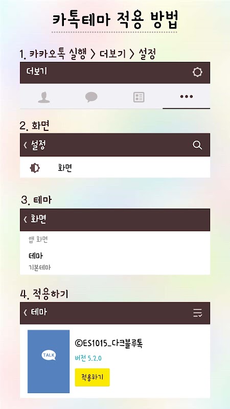 ▶사용방법 : 앱 설치 후에, 카카오톡에서 더보기>설정>화면>테마>적용하기