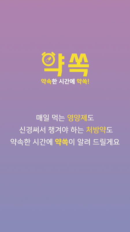 약 알림 약쏙이 약속한 시간에 알려 드릴게요.