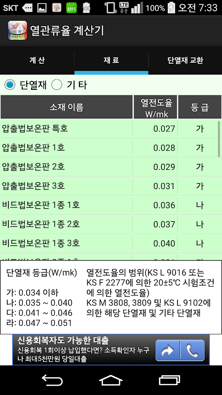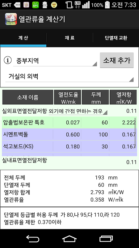 열전도율 수정 : 페놀폼단열재(LG) 0.019 => 0.02