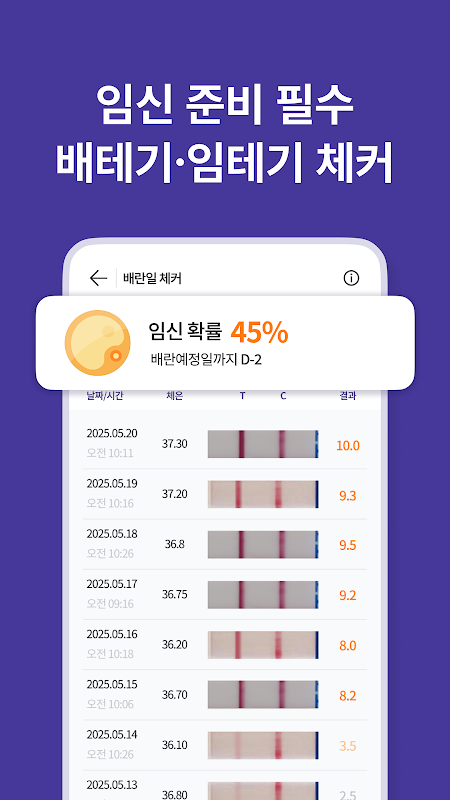 2) हम आपको आज के शरीर की स्थिति के बारे में विस्तार से बताएंगे जो चक्र के आधार पर बदलती है! 3) ओवुलेशन टेस्ट रिजल्ट मापन फ़ंक्शन के साथ अनियमित ओवुलेशन तिथियों की जाँच करें, जो गर्भावस्था की तैयारी के लिए एक आवश्यक वस्तु है। 4) एक बांझपन विशेषज्ञ की देखरेख में प्रत्येक प्रक्रिया का विवरण और यहाँ तक कि दवा की सूचनाएँ भी! बांझपन प्रक्रियाओं को आसानी से रिकॉर्ड करें जो मुश्किल लगती हैं। 2. "गर्भावस्था डायरी", दस महीनों के दौरान एक सुखद जन्म के लिए एक आवश्यक कैलेंडर 1) सुंदर सामग्री के साथ सप्ताहों की संख्या के अनुसार भ्रूण और मातृ स्थितियों में होने वाली परिवर्तन की जाँच करें। 2) यदि आप परीक्षा के दौरान प्राप्त अल्ट्रासाउंड फोटो को पंजीकृत करते हैं, तो भ्रूण के मान स्वचालित विश्लेषण फ़ंक्शन के माध्यम से स्वचालित रूप से दर्ज हो जाएँगे। 3) वजन और सिर की परिधि सहित पाँच भ्रूण विकास मूल्यों के माध्यम से गर्भ में भ्रूण का विकास ठीक से हो रहा है या नहीं, यह देखने के लिए ग्राफ की जाँच करें। 4) यदि आप गर्भावस्था के बाद हर महीने वजन बढ़ने के बारे में चिंतित हैं, तो इसे दस महीने बाद कैलेंडर पर रिकॉर्ड करें और मार्गदर्शन प्राप्त करें। 3. "चाइल्डकेयर डायरी", दस महीने के बाद बच्चे की मासिक आयु के अनुसार विकास जाँच और वृद्धि प्रबंधन