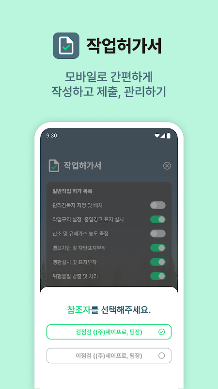 वर्क परमिट: येओंगम-गन कार्यालय सुरक्षा और स्वास्थ्य प्रबंधन प्रणाली आपको वर्क परमिट भरने की अनुमति देती है जिसे सीधे अपने मोबाइल फोन से काम शुरू करने से पहले भरना होगा। ऐप में आवश्यक जानकारी दर्ज करके और इलेक्ट्रॉनिक हस्ताक्षर के साथ अनुमोदन प्रक्रिया पूरी करके, आप बिना कागजी दस्तावेजों के तुरंत वर्क परमिट जारी और रिकॉर्ड कर सकते हैं।