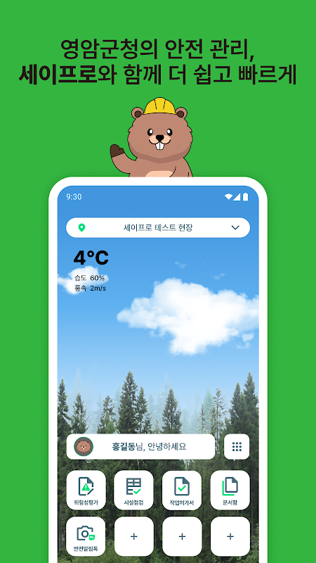 येओंगम-गन कार्यालय सुरक्षा और स्वास्थ्य प्रबंधन प्रणाली एक ऐसी प्रणाली है जो मोबाइल उपकरणों के माध्यम से कुशल सुरक्षा प्रबंधन की अनुमति देती है। यह मोबाइल फोन के माध्यम से विभिन्न सुरक्षा-संबंधित दस्तावेज़ों को आसानी से बनाने और प्रबंधित करने की क्षमता प्रदान करता है। यह आपको जोखिम मूल्यांकन, कार्य परमिट, टीबीएम (टीबीएम), और सुविधा निरीक्षण जैसे महत्वपूर्ण दस्तावेजों को साइट पर ही पूरा करने और अनुमोदन और प्रस्तुत करने में तेजी लाने की अनुमति देता है।