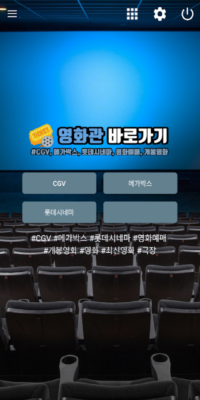 मूवी थियेटर शॉर्टकट विभिन्न मूवी थिएटर जैसे CGV, Megabox, और Lotte Cinema के बारे में एक ऐप में जानकारी प्रदान करता है।