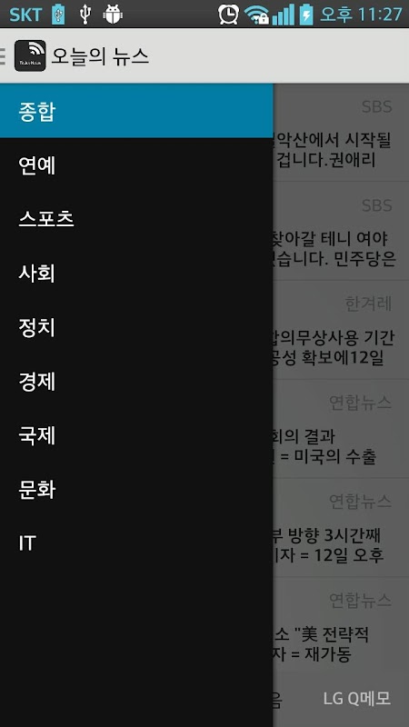 오늘의 뉴스를 카테고리별로 보여줍니다.