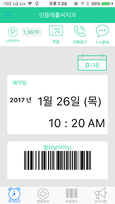 발급된 바코드들 이용하여 병원에서 자동으로 접수를 할 수도 있습니다.