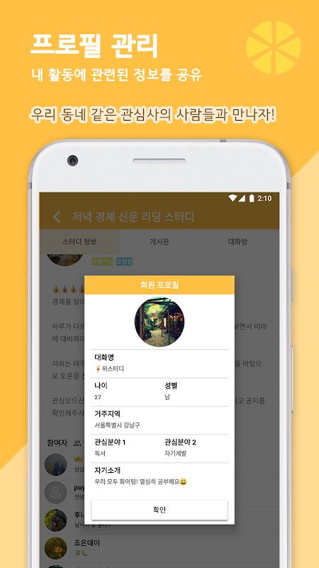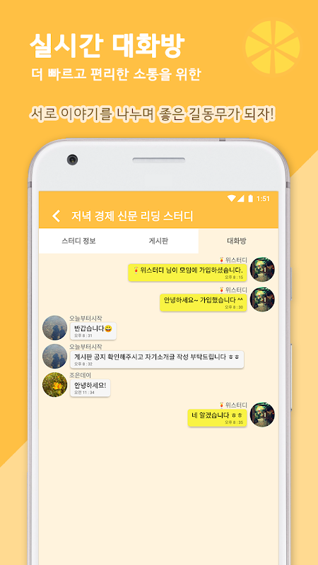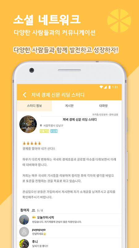 스터디 모임의 회원 전용의 게시판 및 대화방을 제공합니다.