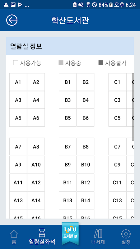 인천대학교 학산도서관 비콘을 이용한 열람좌석예약 서비스를 받을 수 있는 앱입니다.