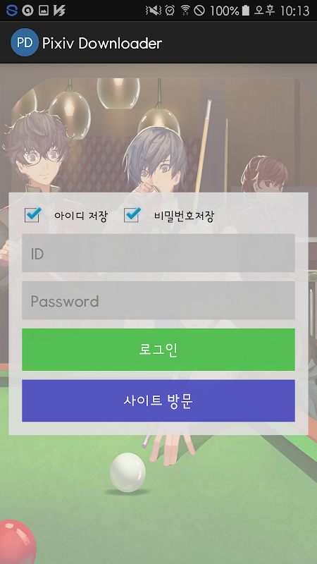 Pixiv 사이트에 올라오는 작품들을 한번에 다운로드할 수 있습니다!