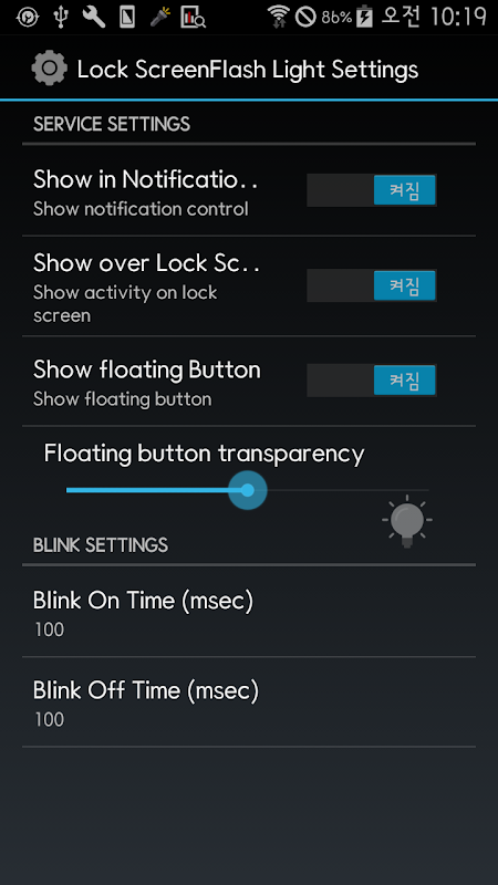 - 바탕화면 위젯을 통한 플레쉬 라이트 제어