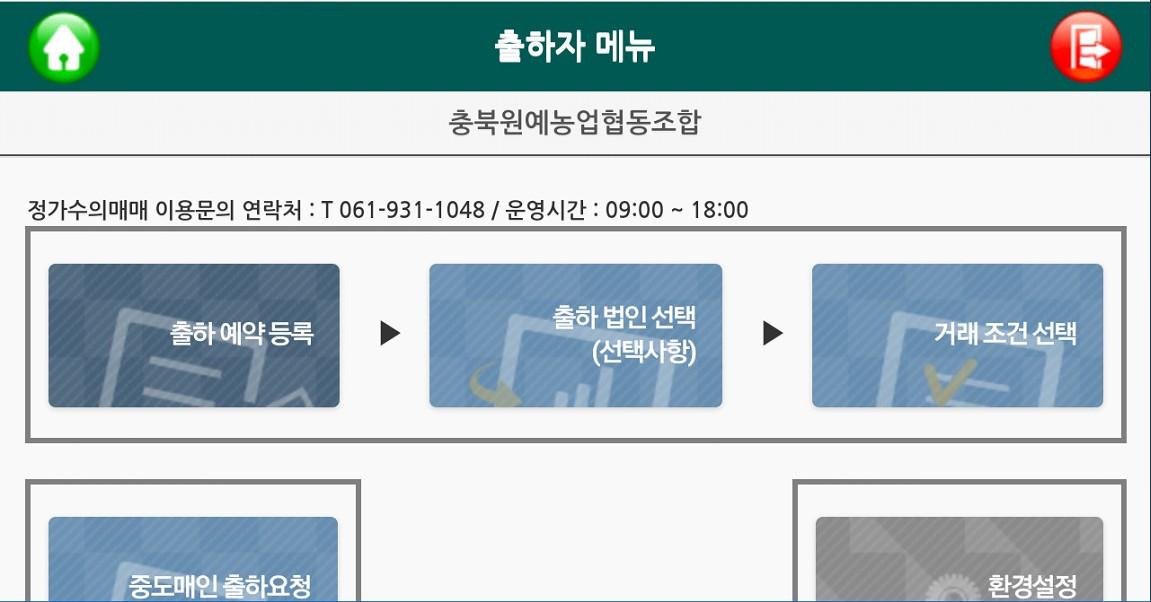 - 출하자는 도매시장에 정가수의 출하를 예약하거나 중도매인의 구매희망 정보를 조회할수 있습니다.