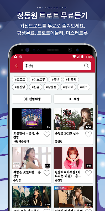 आप बिना किसी सदस्यता पंजीकरण या भुगतान के सभी गाने मुफ्त में सुन सकते हैं।लोकप्रिय ट्रॉट गाने और प्रदर्शन एक बार में सुनें।