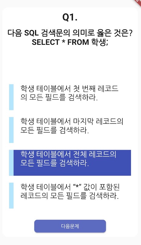 मौजूदा प्रश्नों को यादृच्छिक रूप से प्रस्तुत किया जाता है, ताकि आप ऊबने के बिना सीख सकें।