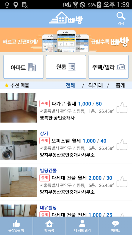 빠방 - 당신이 찾는 좋은방, 빠르게 빠방이 찾아준다.