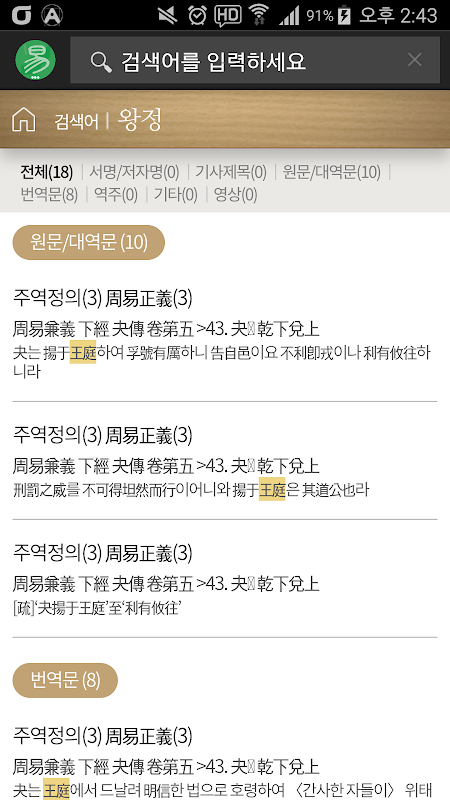 - 전통문화연구회 보급하고 있는 동양고전 13경 주소 앱 시리즈 중 하나인 주역정의(2권) 입니다.