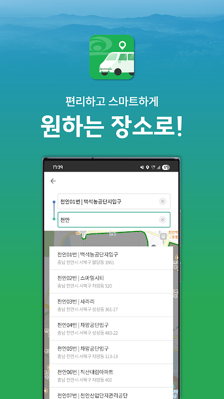 चेओनान इंडस्ट्रियल कॉम्प्लेक्स स्मार्ट शटल के साथ एक नए, आरामदायक और स्मार्ट तरीके से यात्रा करें।