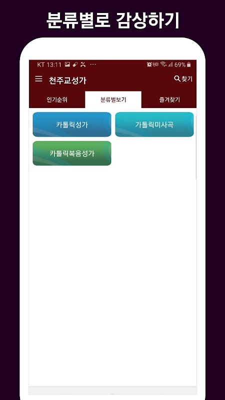 미사곡 중간에 광고 없이 연속으로 들을 수 있어 편리합니다.