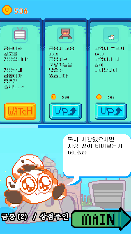 고양이들의 귀여움과 상점주인 금봉이의 고통으로 줄넘기 점수에 많은 도움이 될 것이다!