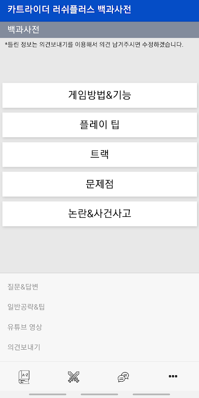 백과사전에 정보 추가, 수정은 앱 내에 의견보내기를 통해 남겨주시면 업데이트 하겠습니다!